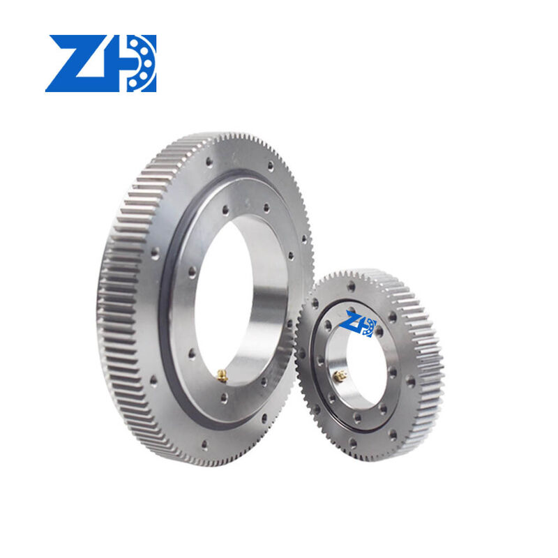 スウィングベアリングは,クレーン,掘削機などの大直径の回転運動を行い,同時に軸性,半径性,モメント性負荷に耐える必要があるさまざまな機器に適しています.風力タービン精密製造およびボトル化機,消防車梯子,自動生産ラインなどの特殊機械でも一般的に使用されています.重機械の安定・精度の高い回転能力と負荷容量を提供する.